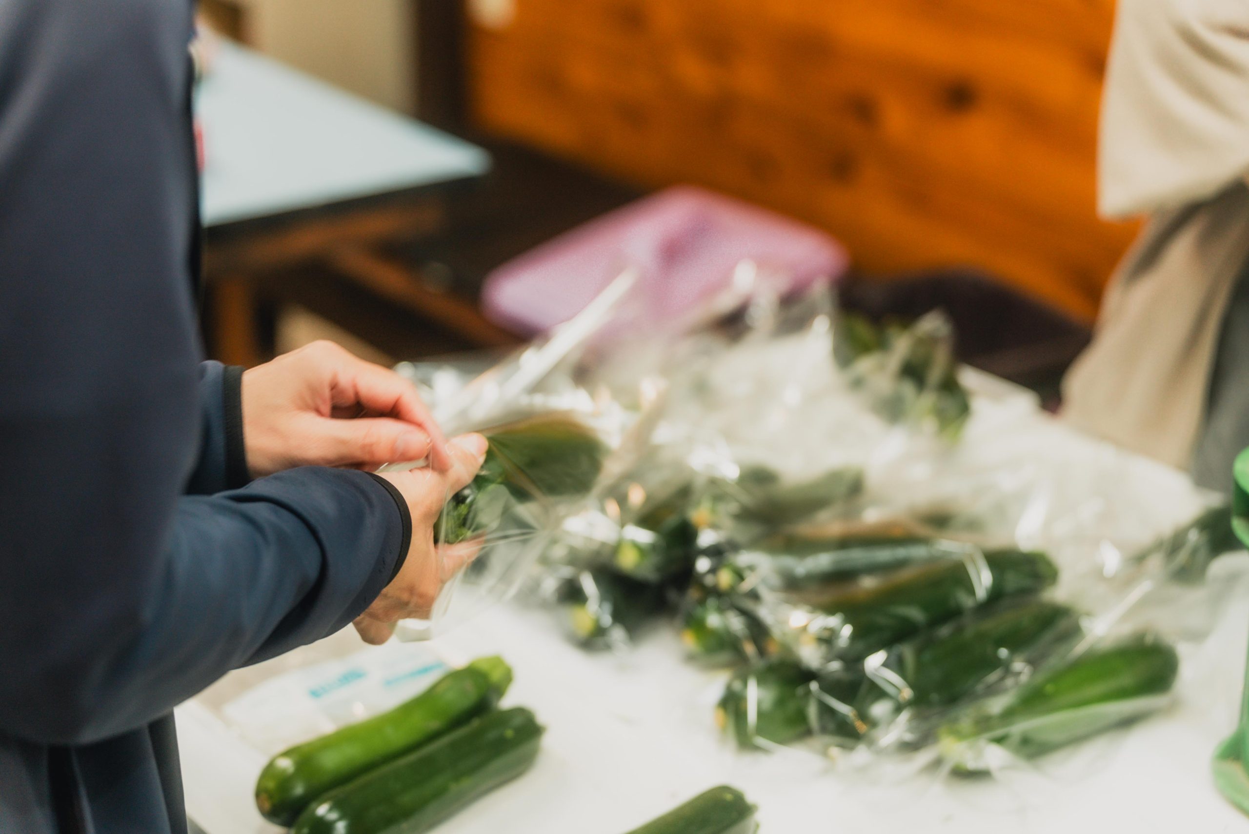 野菜や果物の仕分けと袋詰め、
