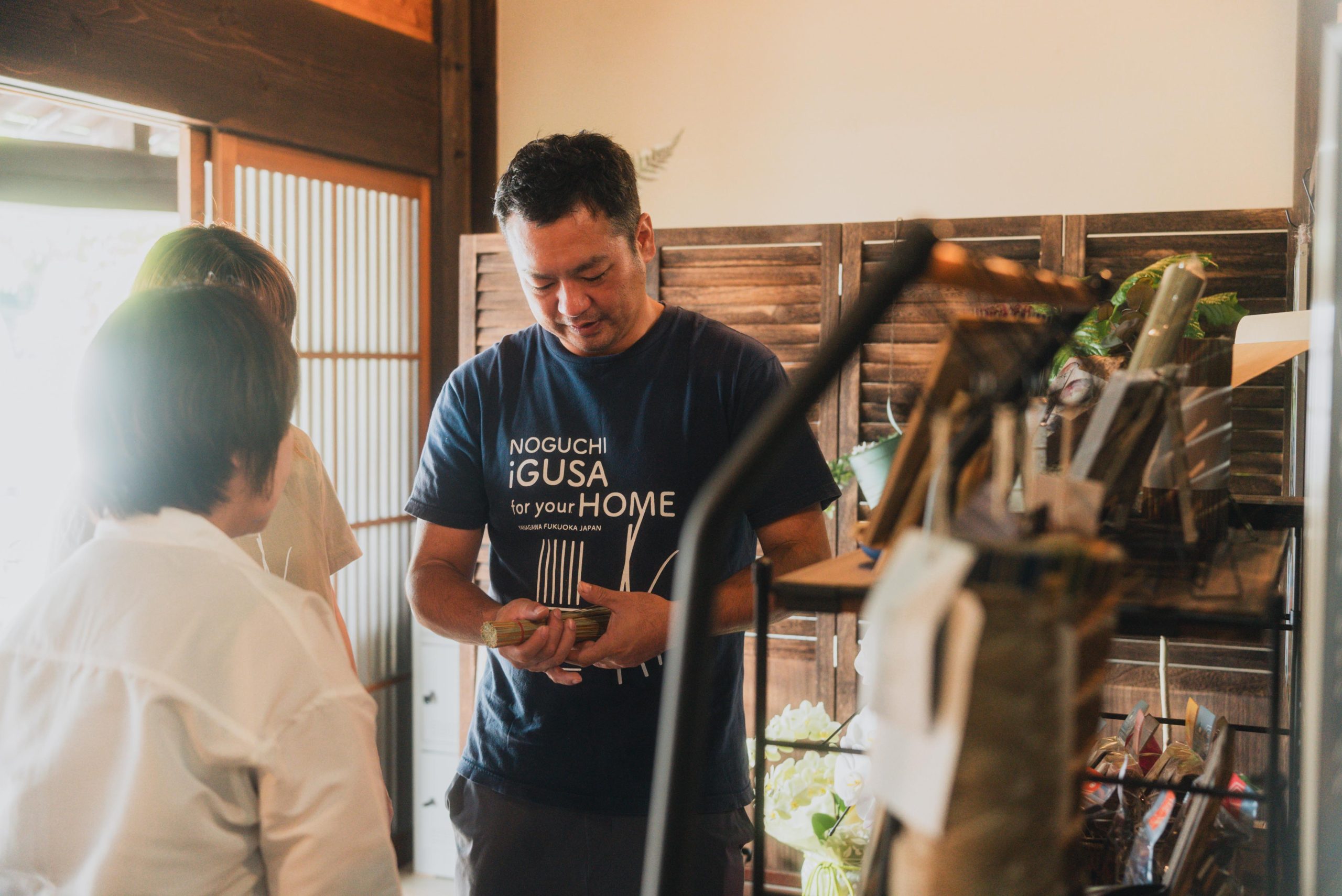 KOTONAでは、いぐさを詰め合わせるなどの商品づくりの作業を行っています。